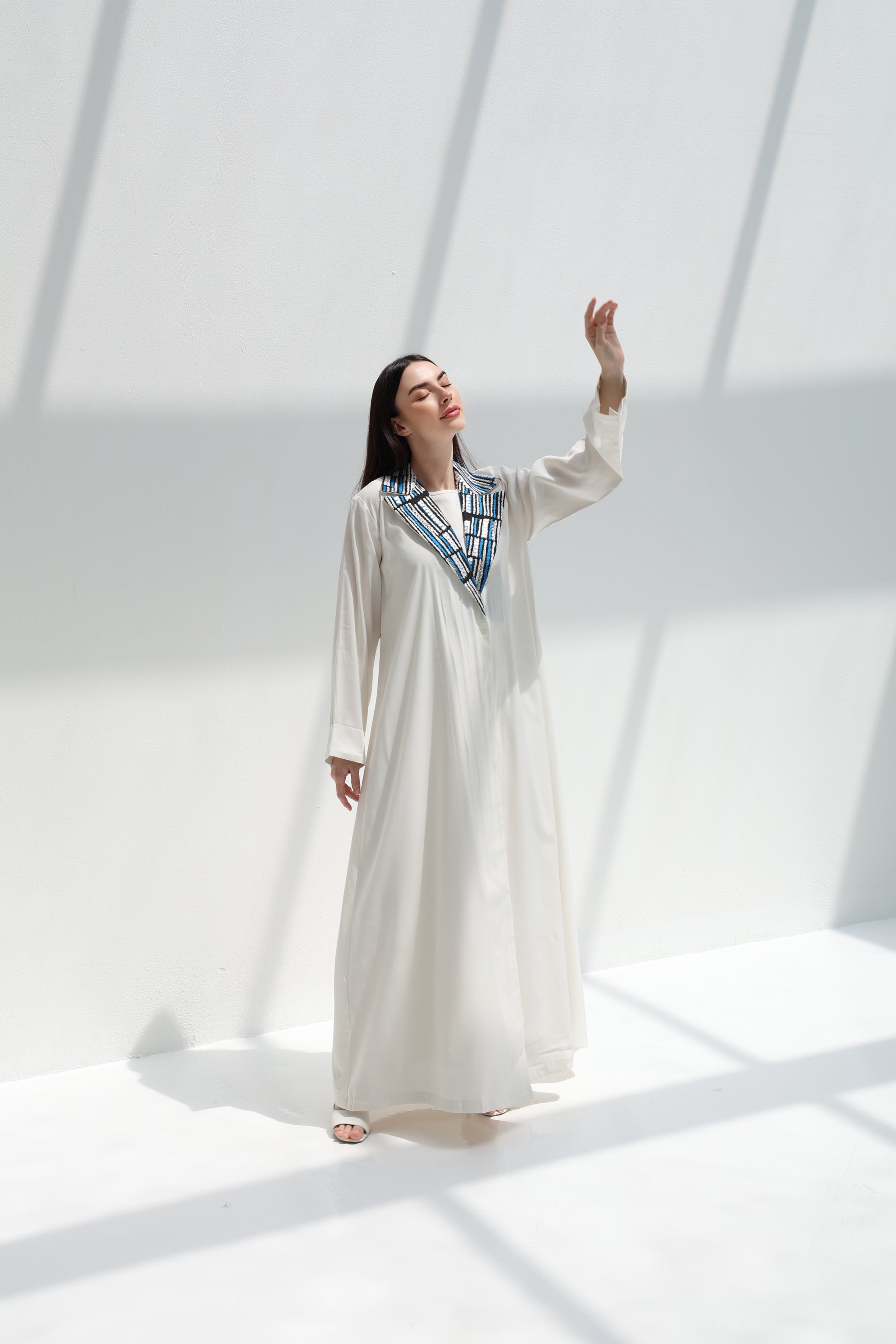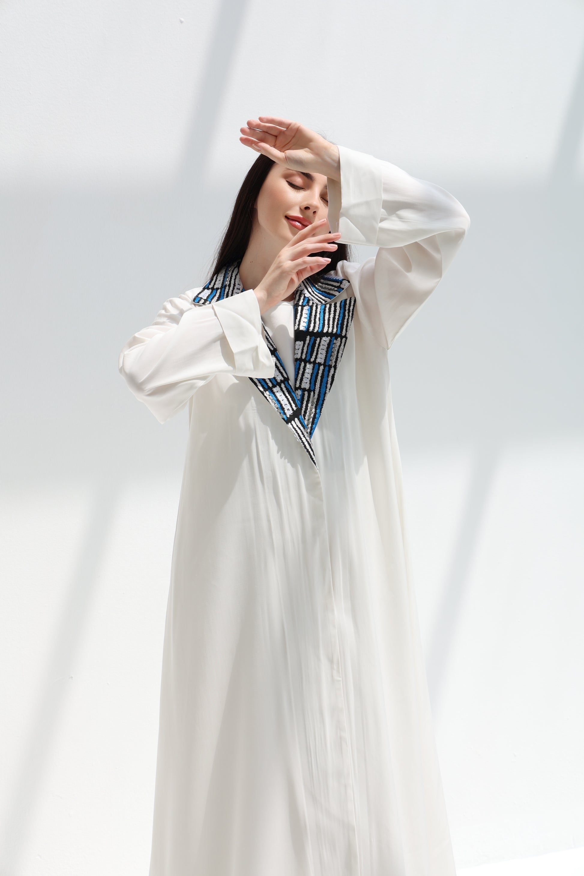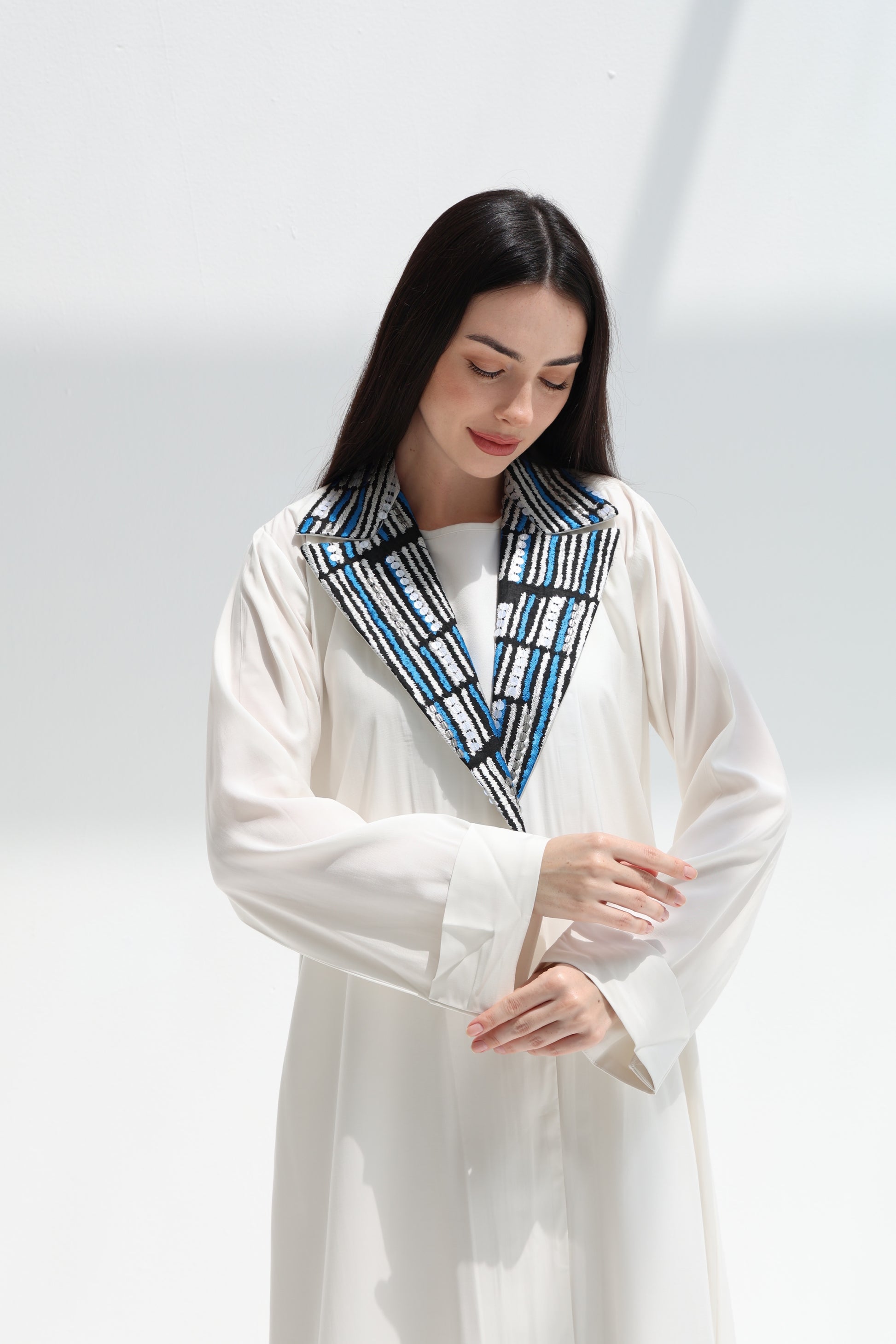 With its clean silhouette and understated charm, this abaya is perfect for those who appreciate subtle elegance with a hint of contemporary style. Pair it with statement accessories or keep it simple for a polished, graceful look.